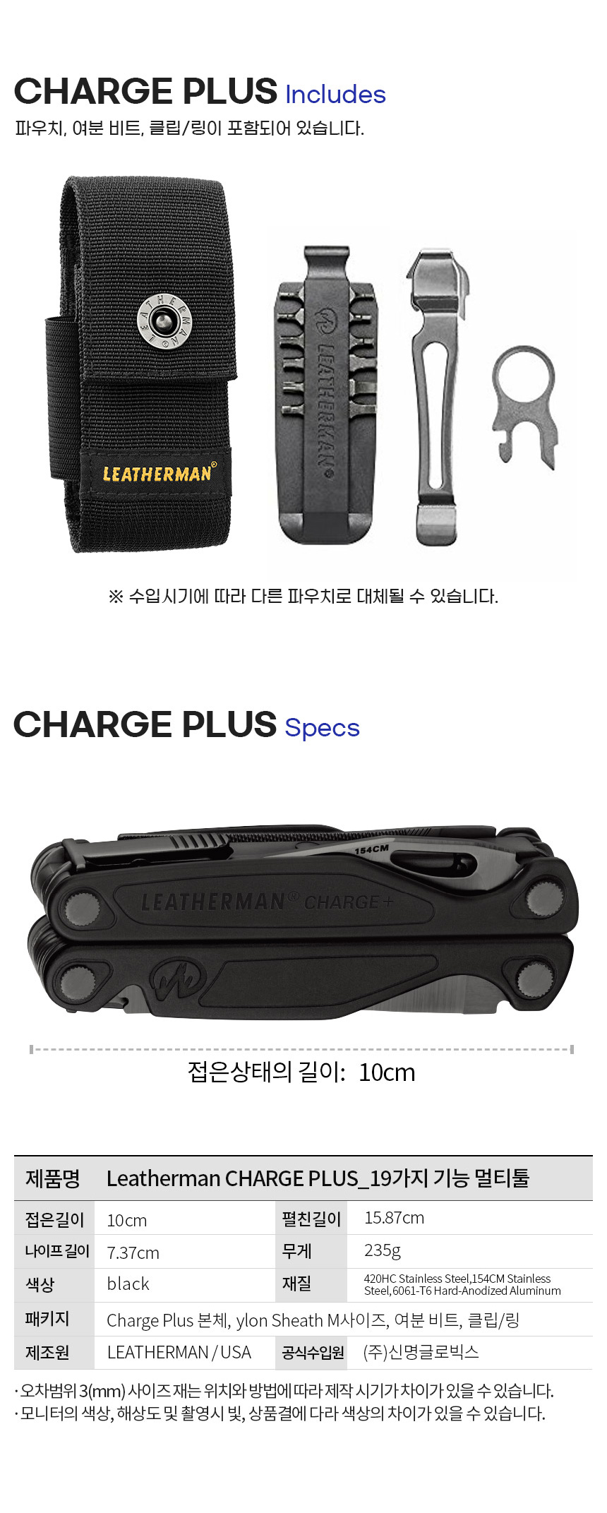 | 제품 구성 | Leatherman Charge Plus 블랙(차지 플러스 블랙) | ||