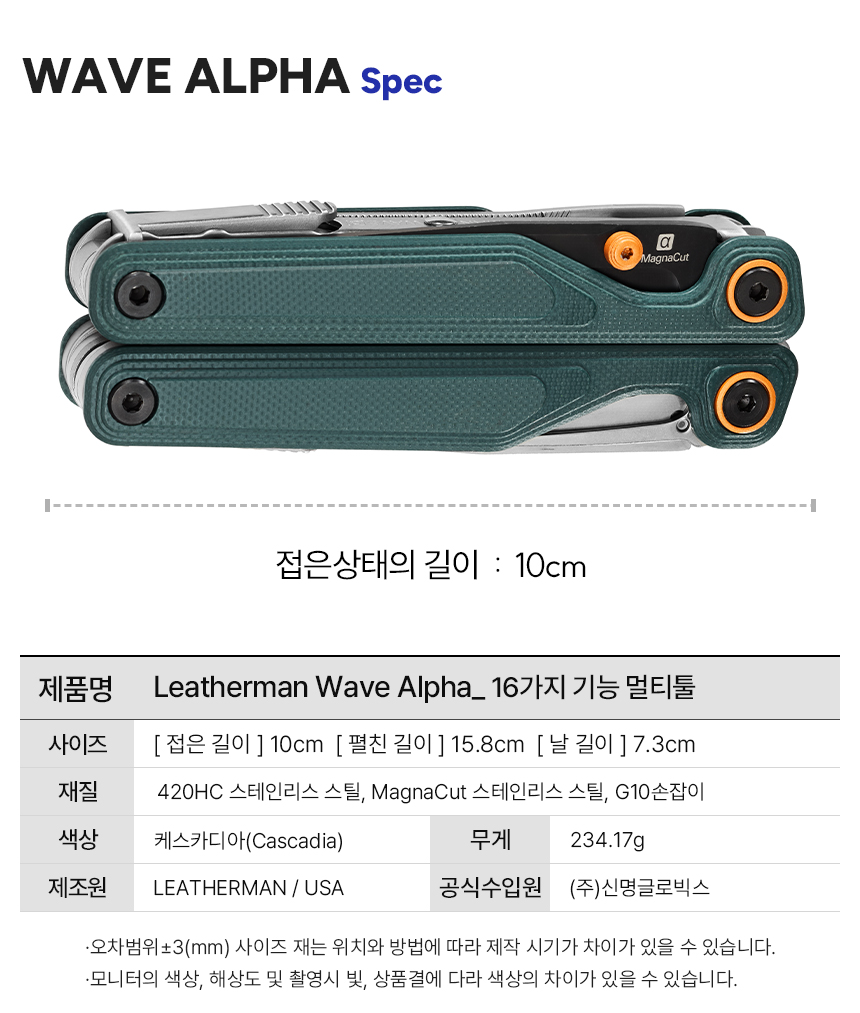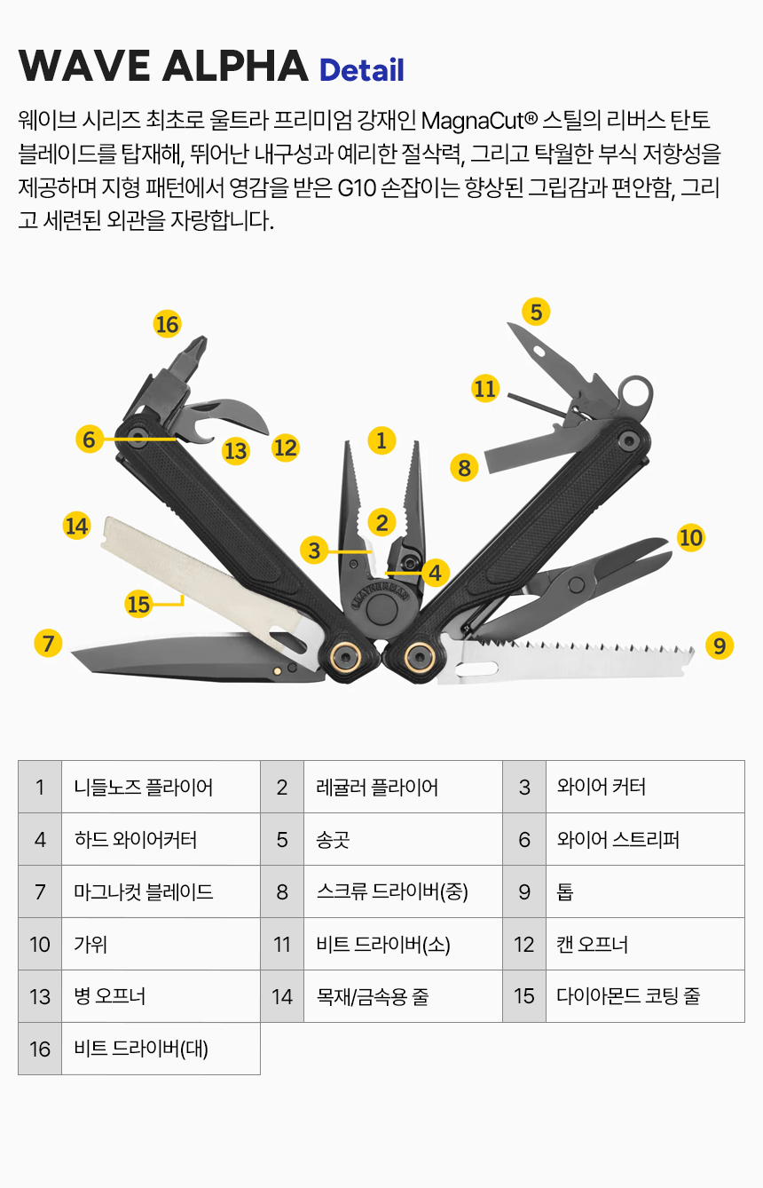 | 품명 및 모델명 | 레더맨 웨이브 알파 16-in-1 멀티툴 | ||