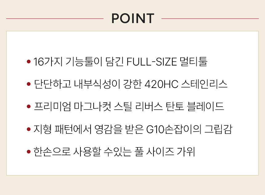 | 제조사(수입자/병행수입) | 제조 : LEATHERMAN / 수입 : 신명글로빅스 | ||